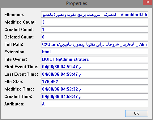 يزودك بقائمة شاملة لكل الملفات التي حدث لها من تعديل، إضافة ، أو حذف خلال الوقت التي كانت فيه الملفات مُتعَقبة . بالإضافة إلى إمكانية تعقبك للأقراص المحلية عبر إذا كنت تملك “صلاحيات القراءة” .
