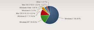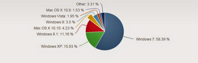 من جهة أخرى ما زال نظام ويندوز إكس بي يفاجئ الجميع بالنتائج الجيدة التي يحققها حيث و رغم توقف الدعم التقني و الأمني له منذ أكثر من عام إلا أنه يحافظ على مركزه كثاني أكثر نظام تشغيل استخداما بنسبة 15.93 في المئة متبوعا بنظام ويندوز 8.1 بنسبة 11.16 في المئة ثم نظام آبل OS X 10.10 بنسبة 4.23 في المئة أما ويندوز 8 فجاء خامسا بنسبة استخدام لم تتجاوز 3.50 في المئة.