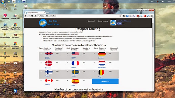 هذه الخدمة لا تقدم لك فقط سياسة التأشيرات في بلدان مختلفة ، بل انها تمكنك من معرفة مستوى جواز السفر الذي تحمله ومصداقيته وأهميته في العالم ، ويحسب هذا التقييم على أساس عدد من البلدان التي يمكنك زيارة من دون تأشيرة، وكذلك عدد سكان البلد ومساحة البلد وغيرها .
