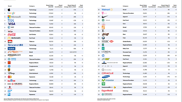 آبل أغلى علامة تجارية في العالم لعام 2015 و غووغل ثانيا..