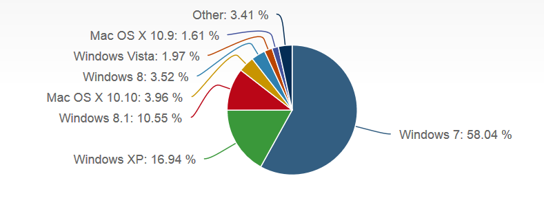 و حسب أرقام NetMarketShare بالنسبة لشهر مارس الماضي فإن ويندوز 7 ما زال يتربع على عرش أكثر أنظمة التشغيل استعمالا بنسبة 58.04 في المئة يليه نظام ويندوز إكس بي بنسبة 16.94 في المئة متقدما على النظام الأحدث منه ويندوز 8.1 و الذي كانت نسبة مستخدميه 10.55 في المئة فقط.